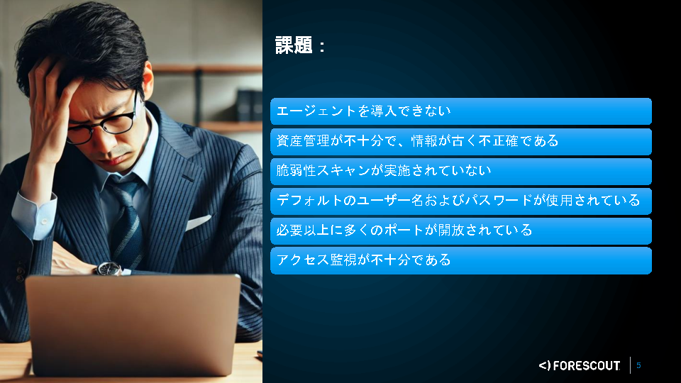 15:05~15:45 【ITだけじゃない、OT/IoT機器も】全てのネットワークデバイスをエージェントレスで可視化する方法