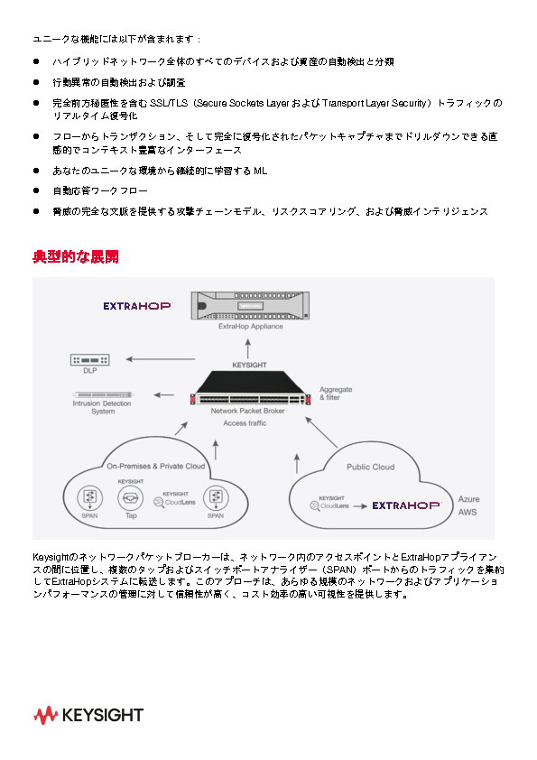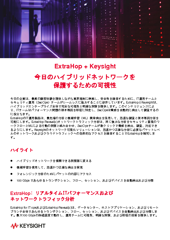 具体的には、高度な振る舞い検知機能や機械学習アルゴリズムを備え、オンプレミス、クラウド、ハイブリッド環境を含むネットワーク全体を可視化し、すべてのデバイス、アプリケーション、通信パターンをリアルタイムで監視する次世代型NDR「ExtraHop」をはじめ、増大し複雑化するネットワークトラフィックを効率的に集約・フィルタリング・分配する「Keysight ネットワークパケットブローカー」を組み合わせることで、複雑化するネットワーク時代において、未知の脅威やゼロデイ攻撃を高精度かつ迅速に検知する方法を詳細にご紹介します。