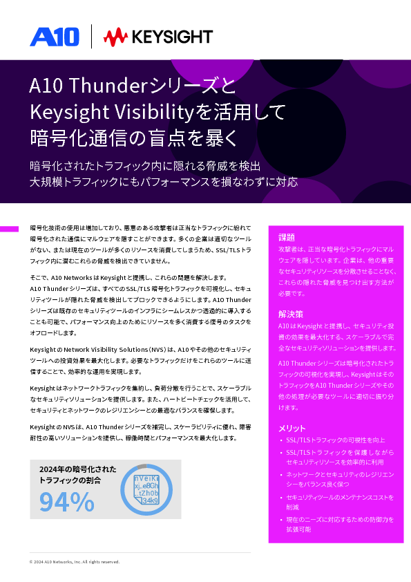 10:05~10:45 暗号化通信に隠れたランサムウェア関連の不審通信、NDR・IDS検知の過負荷を放置していませんか?~Keysight×A10でSSL/TLS暗号化通信を可視化しゼロトラスト実現を支える~