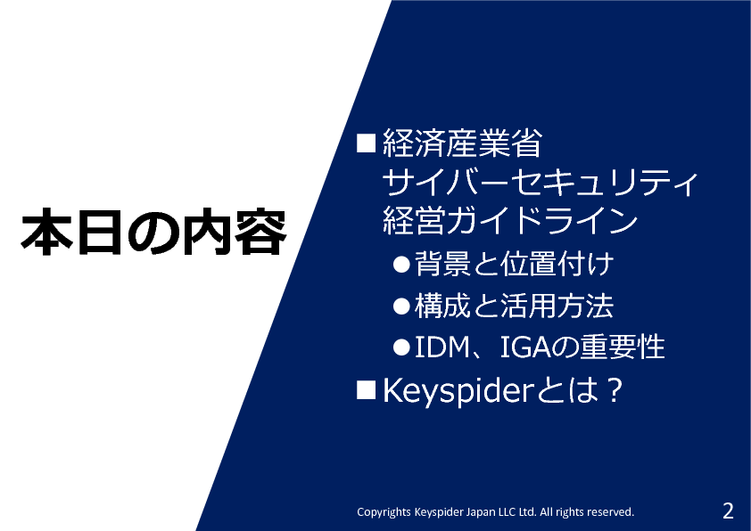 12:05~12:35 経産省 サイバーセキュリティ経営ガイドラインの解説とIDM、IGAの重要性 ~クラウド時代に必要となる統合ID管理とアクセス権限統制の実践ポイント~