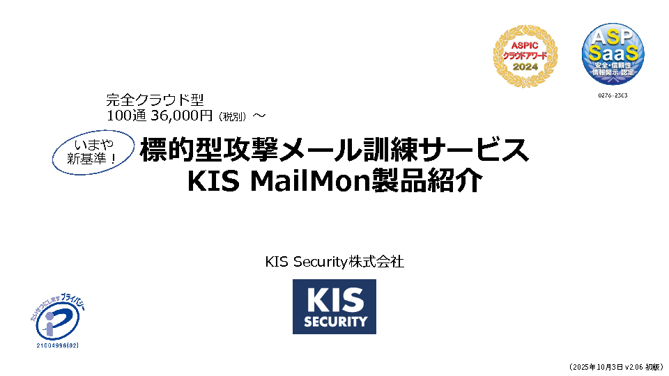 【再放送】進化する標的型攻撃メールにどう備える? ClickFixやクイッシングにも対応するメール訓練の新常識~低コストかつ高精度な訓練を実現、3年で550社超が採用した「KIS MailMon」を徹底解説~