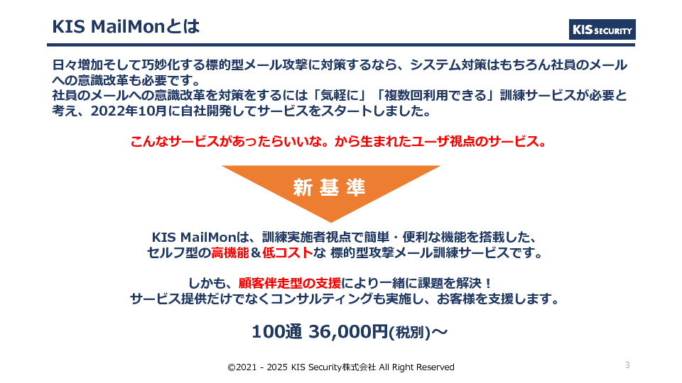 13:05~13:45 進化する標的型攻撃メールにどう備える? ClickFixやクイッシングにも対応するメール訓練の新常識~低コストかつ高精度な訓練を実現、3年で550社超が採用した「KIS MailMon」を徹底解説~