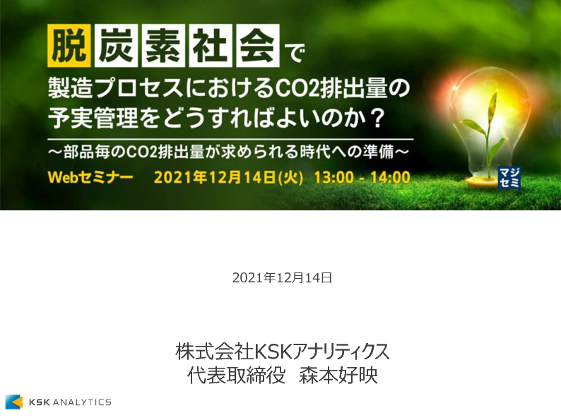 13:05~13:45 脱炭素社会で製造プロセスにおけるCO2排出量の予実管理をどうすればよいのか?