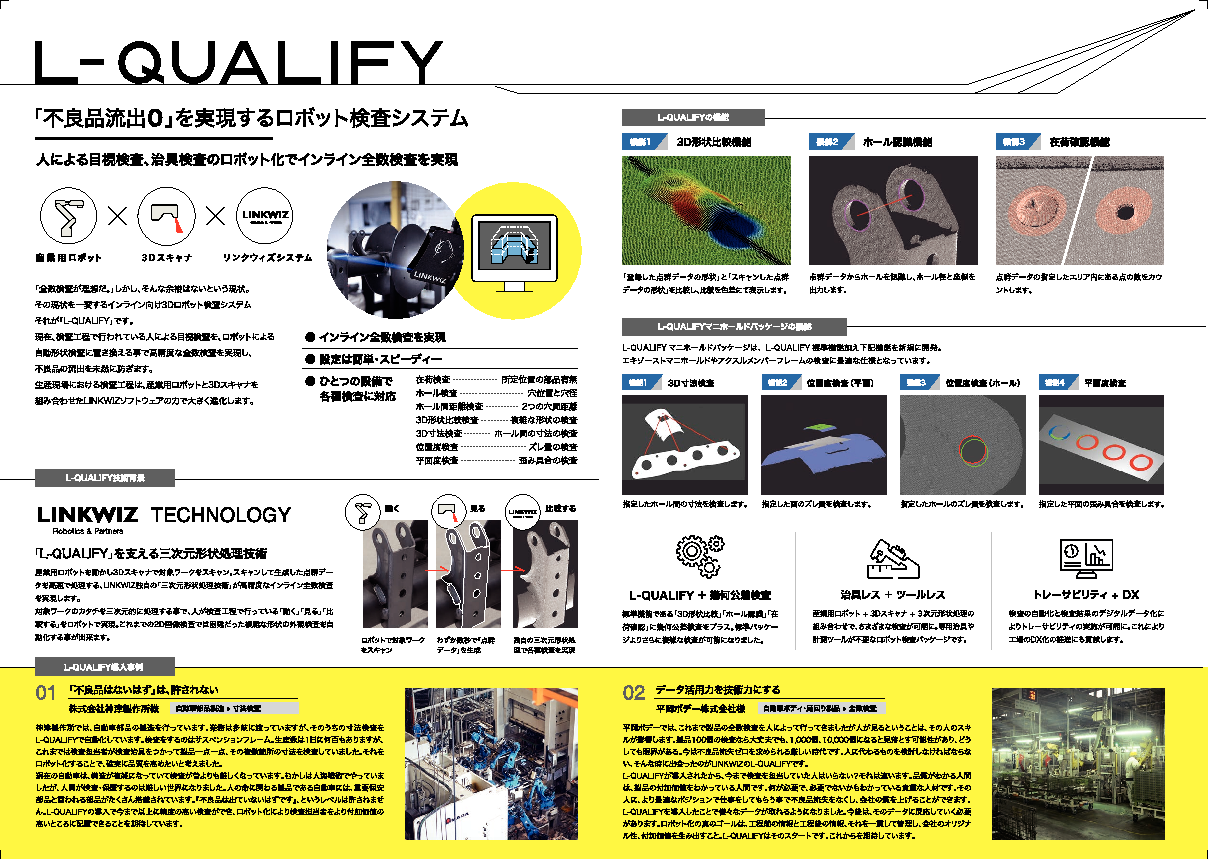 本セミナーでは、主に外観検査、寸法測定など製造業における検査業務自動化における課題と解決策を解説します。具体的な解決策として三次元形状処理技術を使い各種非接触検査を可能にしたロボット検査システム「L-QUALIFY」をご紹介。L-QUALIFYで取得した検査データを活用した品質改善DX実現の道のりについてご紹介いたします。
