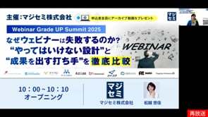 そこで、本カンファレンスでは、成果が出るウェビナーと、そうでないウェビナーの違いを「設計」「集客」「導線」の3つの視点から整理し、