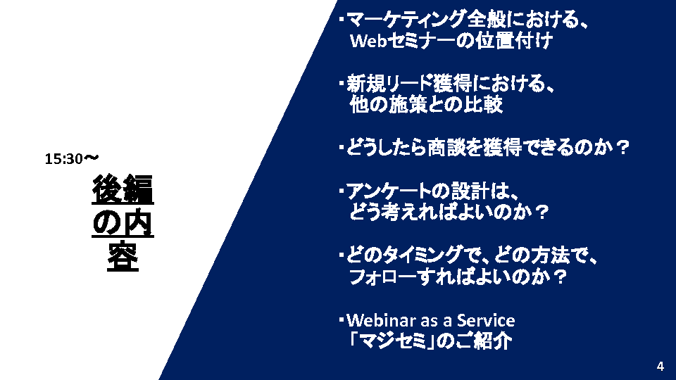 別のWebセミナーとして、セミナー後のフォローをどうすればよいのについて解説致しますので、合わせてご参加下さい。