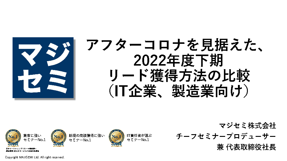 アフターコロナを見据えた、2022年度下期リード獲得方法の比較 ~リアル展示会・セミナー、資料DL、ウェビナーなどの手法と、媒体の比較など~
