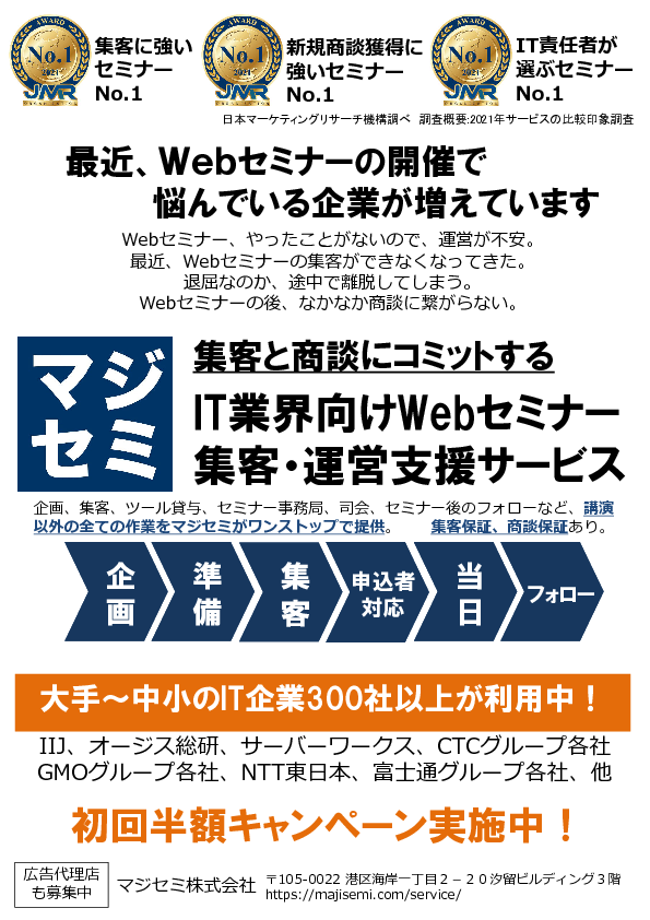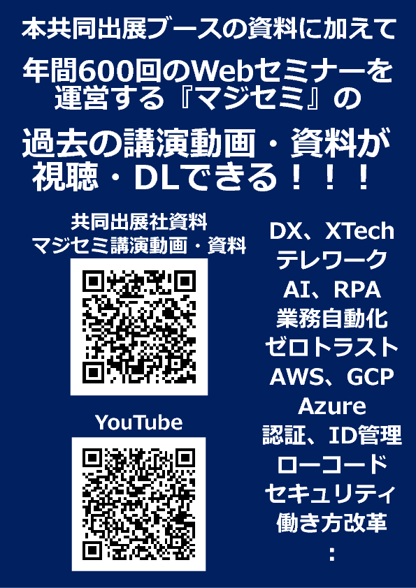 このページは、Japan IT Week 2021 春 マジセミ出展ブース 動画・資料公開ページです。