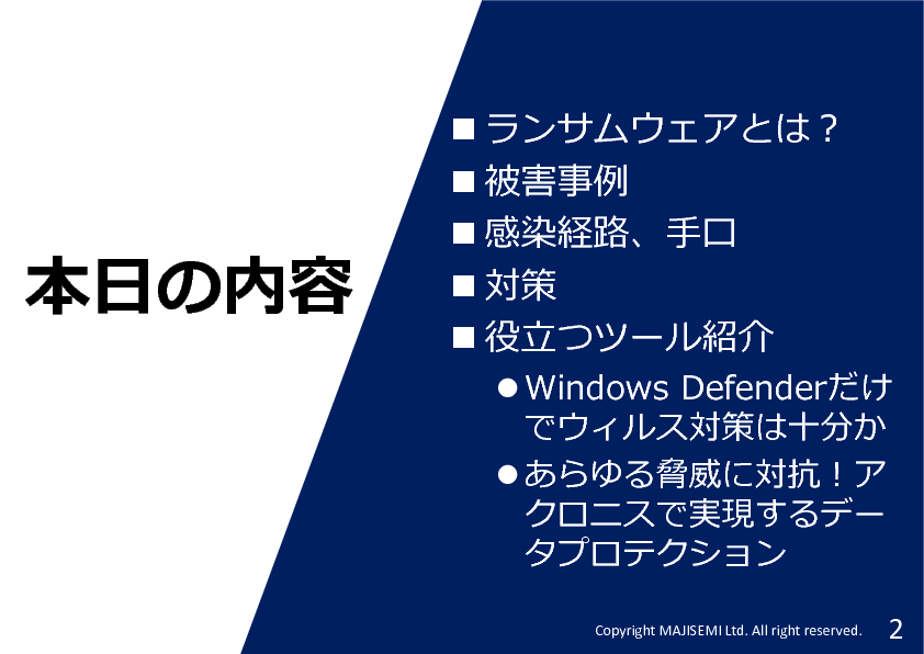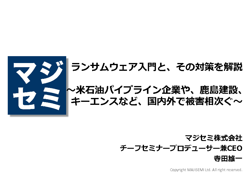 本セミナーでは、ランサムウェアの仕組み、攻撃パターンや動向について、入門解説します。