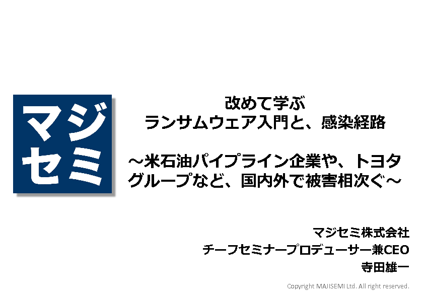 本セミナーでは、ランサムウェア「超」入門として、改めてランサムウェアとは何なのか、その攻撃パターンや感染経路について解説します。