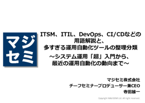 そこで今回のセミナーでは、システム運用とは?から改めて見つめ直し、まずはDevOps、CI/CDや、ITSM、ITILなどの用語解説と、システム運用に関する最近の動向について整理します。