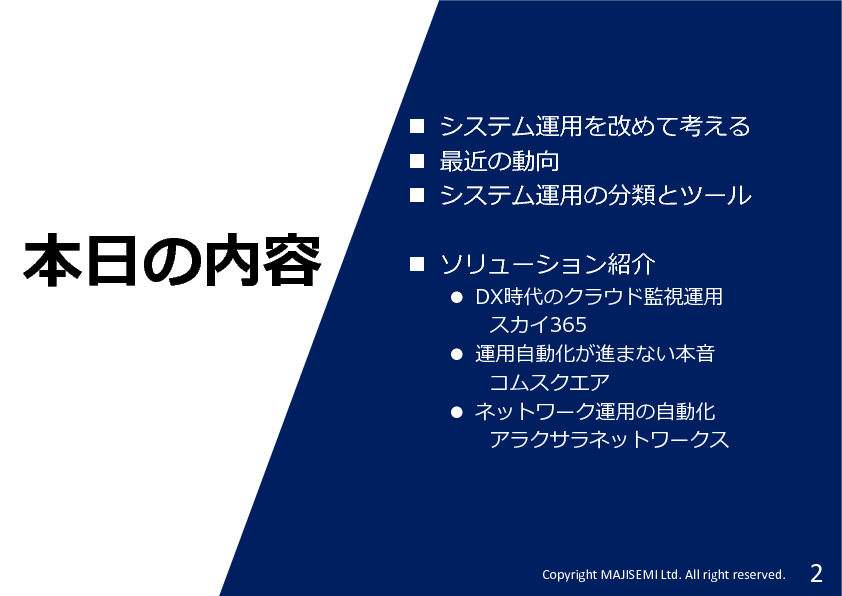 本セミナーでは運用自動化が進まない要因とその解決手段として弊社が独自開発した運用自動化プラットフォームをご紹介いたします。