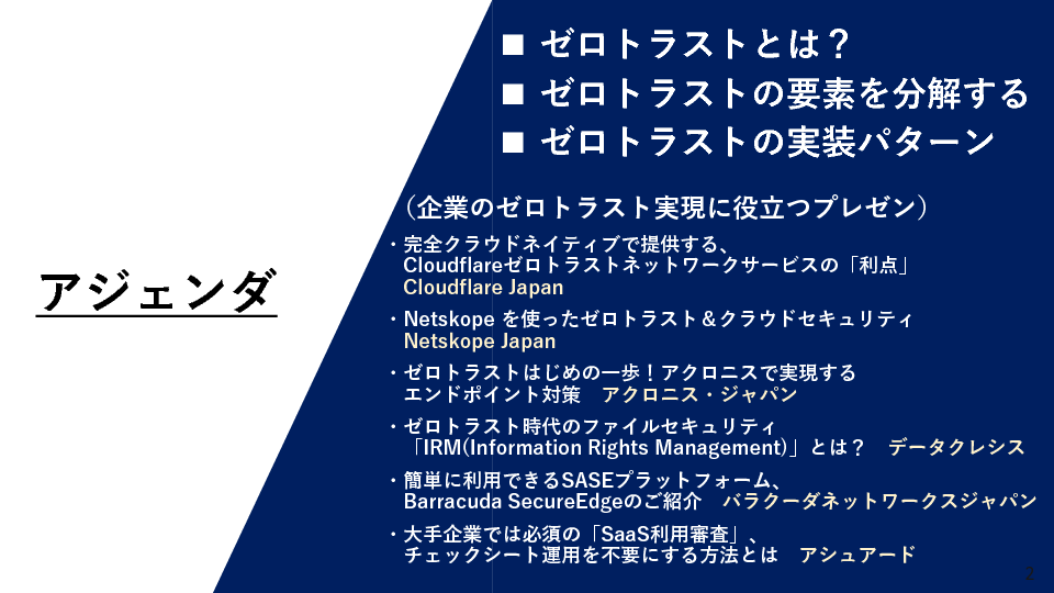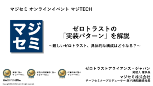 そこで本セミナーでは、ゼロトラストの実現のためには、どのようなカテゴリの製品をどのように組み合わせる必要があるのか、ゼロトラストの「実装パターン」について、わかりやすく解説します。