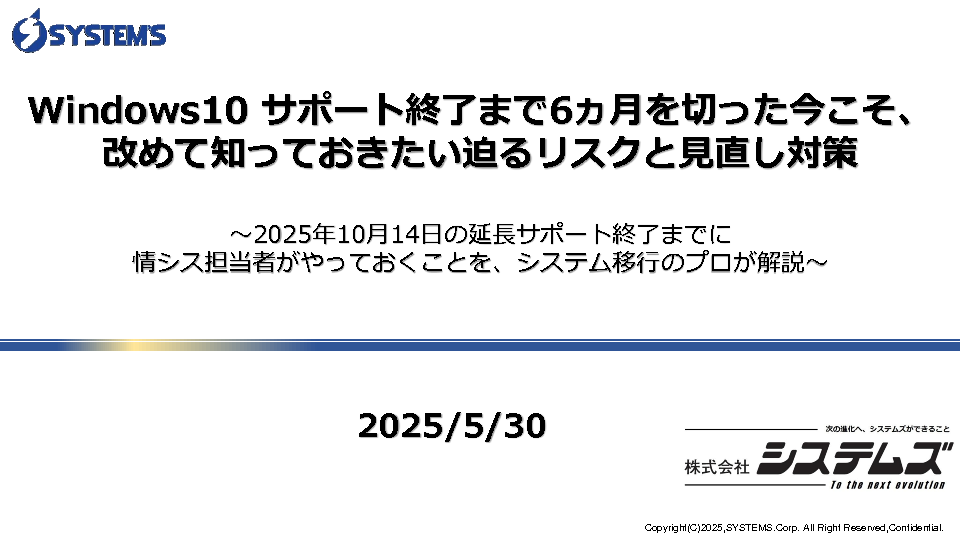15:30~16:00 Windows10 サポート終了まで6ヶ月を切った今こそ、改めて知っておきたい迫るリスクと見直し対策
