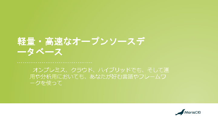 本セミナーでは、以下のようなMariaDB独特の機能やその活用方法をご紹介します。