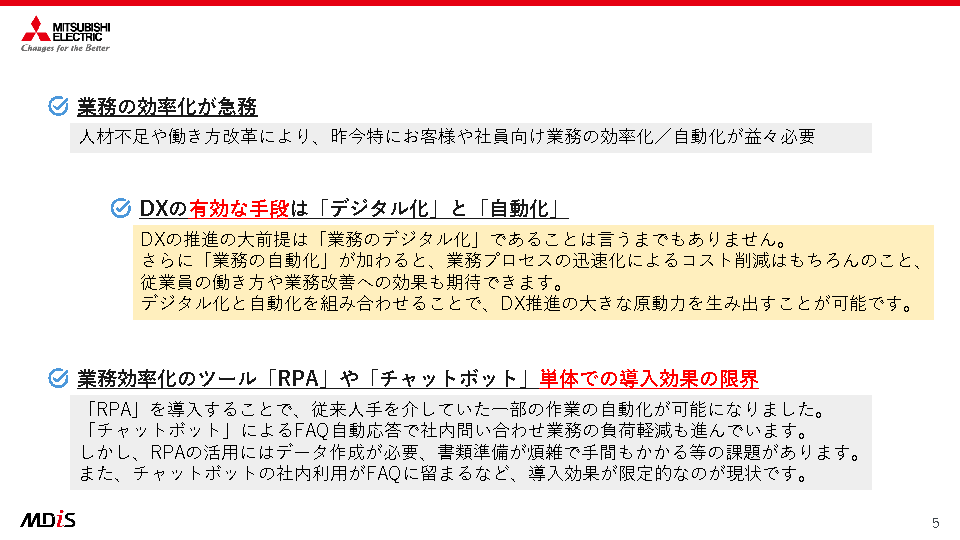 DXの要、業務の「デジタル化」「自動化」はどうすれば実現できるのか?~AIチャットボットが様々な業務を代行!! RPAとの連携で社内DXを推進~