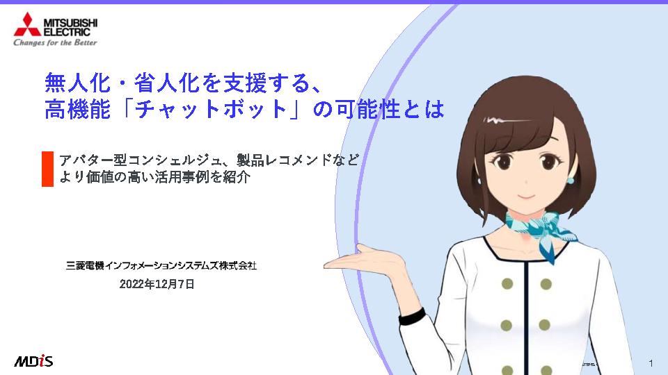 本セミナーでは、より高い付加価値があり導入効果が期待できるチャットボットをご提案。アニメーションで動作する自動受付/リモート相談を可能にするアバター型チャットボット端末、複数候補から最適な製品やサービスをランキング表示する製品レコメンドなどをデモ・事例紹介を交えて紹介いたします。