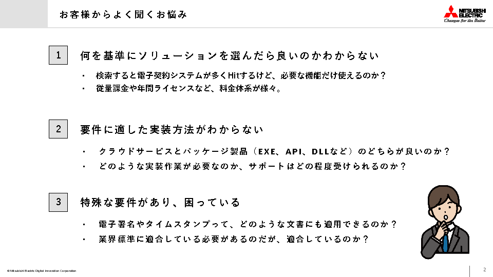 「電子署名のソリューションを組み込むにはどうすればいいのか?」「市場には多くの電子署名サービスプロバイダーが存在するが、どのサービスが自社に最適なのか分からない」などとお悩みの方は、ぜひご参加ください。