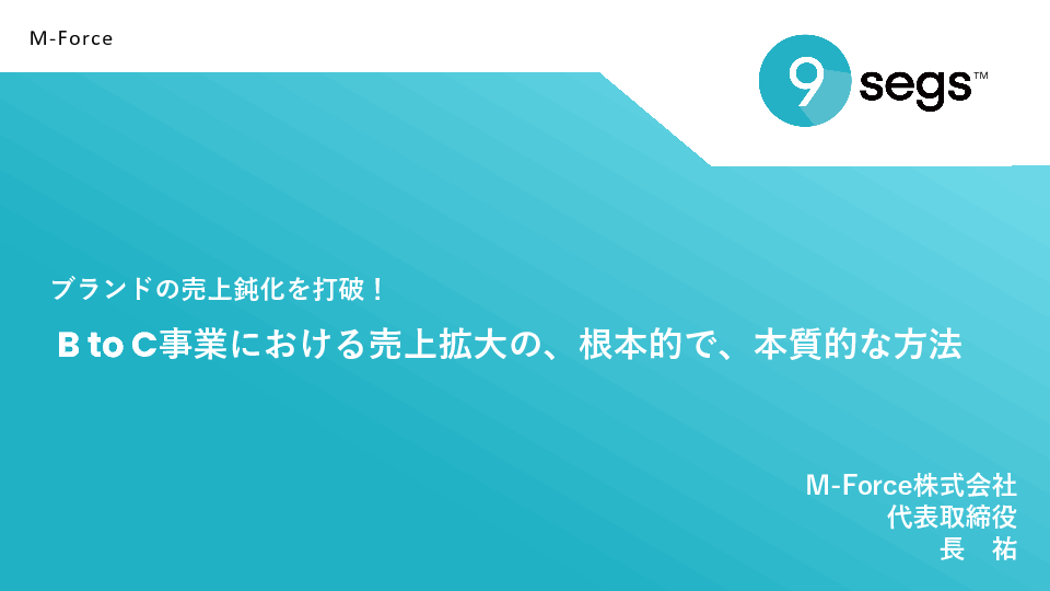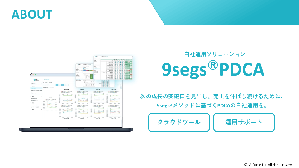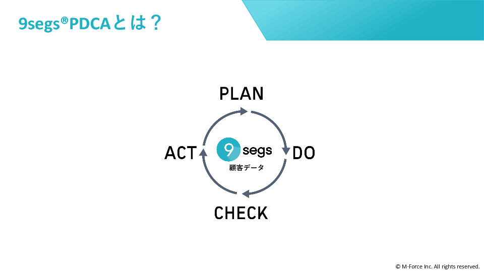 また、M-Force株式会社が提供する、具体的な方法論としての顧客起点のPDCAメソッド「9segs」についても解説します。