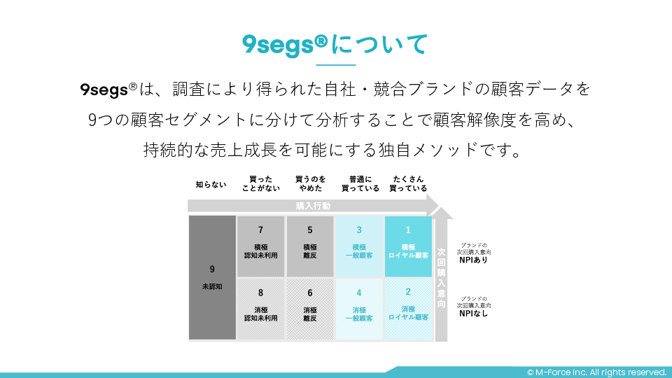 さらに、M-Force株式会社が提供する顧客起点のPDCAメソッド「9segs」と顧客分析手法「N1分析®」についても具体的に解説します。
