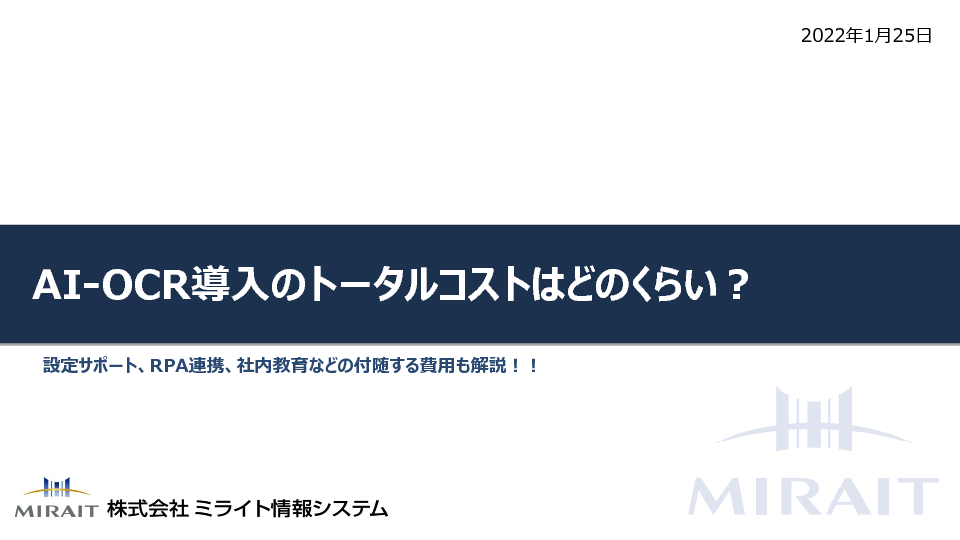16:15~16:50 AI-OCR導入のトータルコストはどのくらい?(ミライト情報システム)