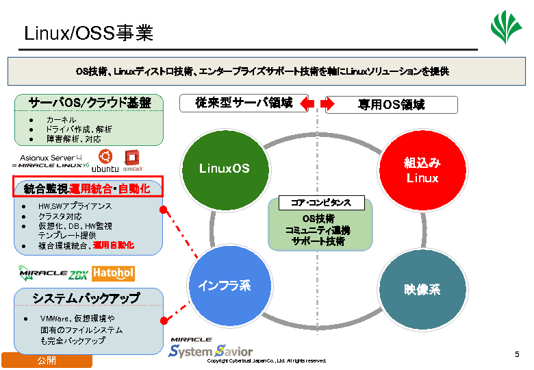 オープンソースに対する品質の不安の解消や長期サポートの提供、可用性を高めた冗長化ソリューション、外部連携オプション製品など、企業利用に望まれる製品やサービスを「MIRACLE ZBX」ブランドとして提確立しています。