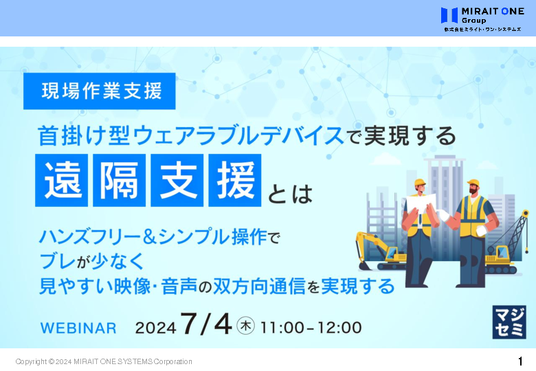本セミナーでは、現場で作業するエンジニアを遠隔支援するための「みらいコネクト」を取り上げ、その特徴や利点、具体的な活用方法について詳しく解説します。