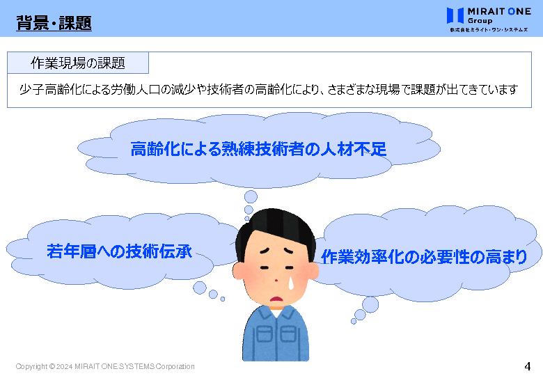 近年、技術の急速な進化と顧客ニーズの多様化に伴い、多くの業界で製品やシステムの複雑化が進んでいます。そのため、製品や設備のメンテナンスやトラブルシューティングを担当する現場では、深刻な人材不足に加えて、さらに高度な専門知識とスキルが求められています。
