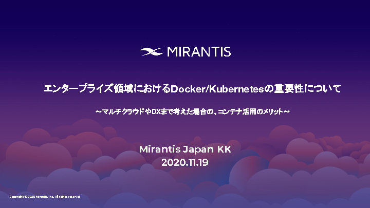 16:05~16:45 エンタープライズ領域における、Docker、Kubernetesの重要性について