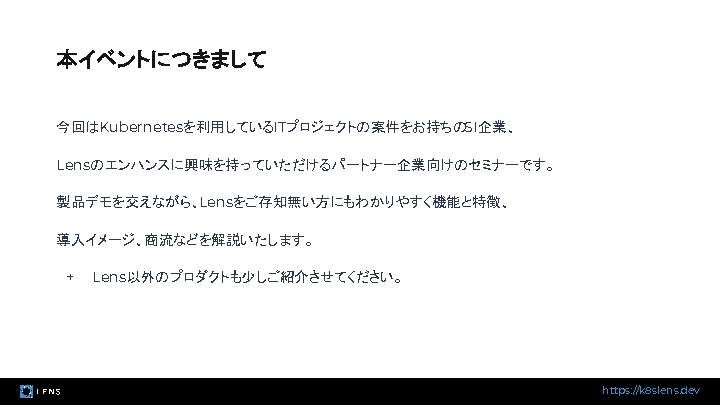 Lensのエンハンスに興味を持っていただけるパートナー企業向けのセミナーです。