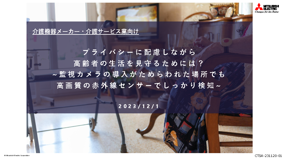 介護機器メーカー、介護サービス業向け プライバシーに配慮しながら、高齢者の生活を見守るためには?~在宅介護・高齢者施設など、監視カメラの導入がためらわれた場所でも高画質の赤外線センサーでしっかり検知~