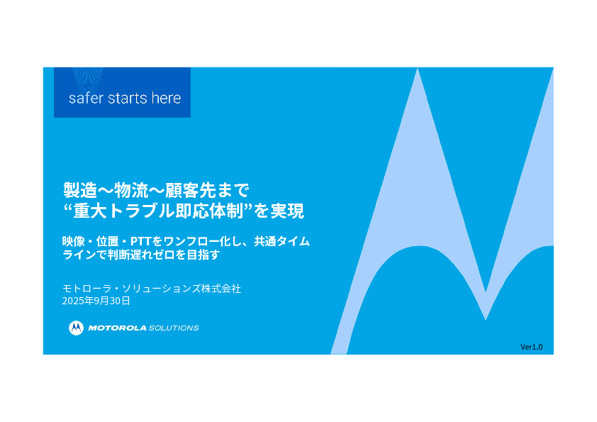 本セミナーでは、モトローラ・ソリューションズのクラウド型ブロードバンドPTTサービス「WAVE PTX ブロードバンド無線機」を活用し、検知から指示・記録までを一貫して回す“現場即応体制”の構築手法を解説します。