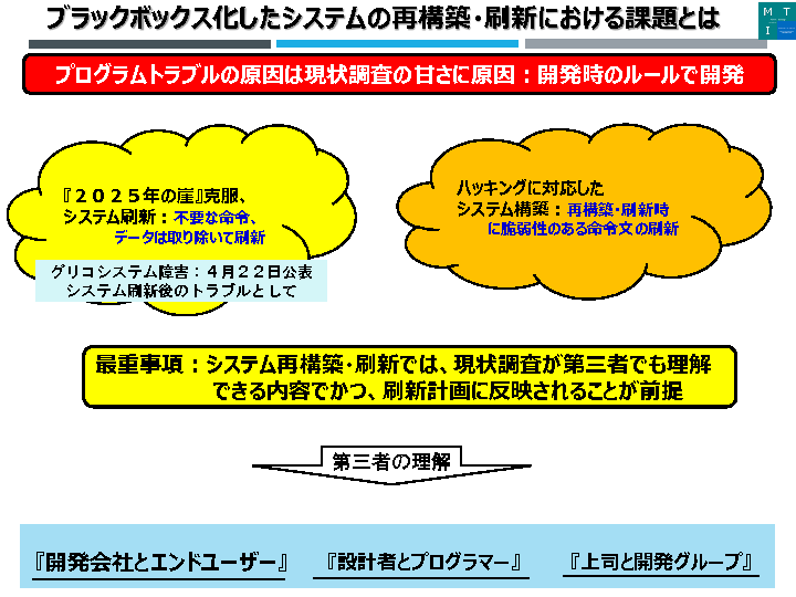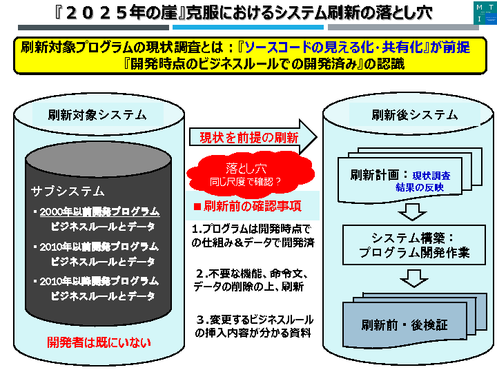 技術者不足と複雑化により中身がわからない、新業務との対比ができない