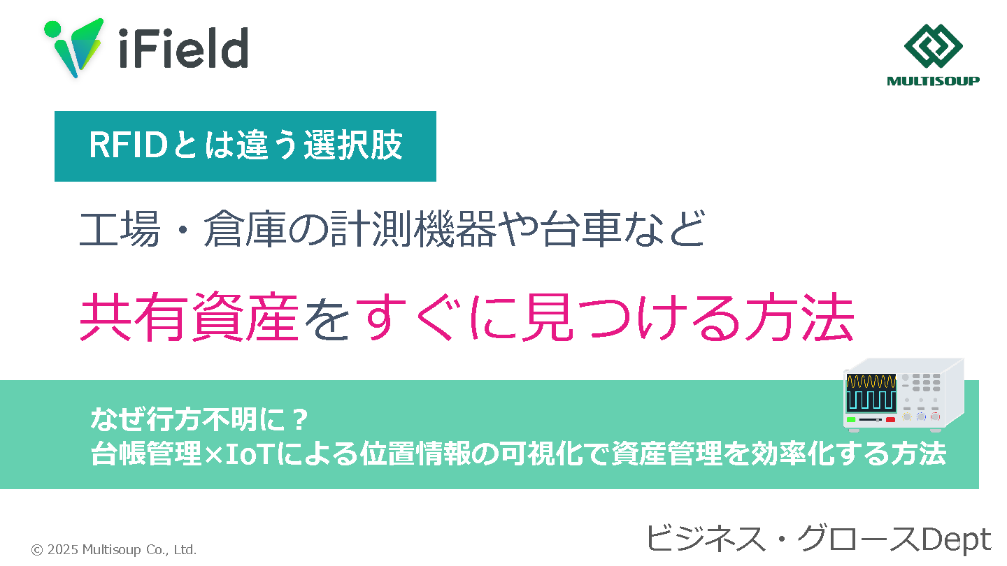 13:05~13:45 【RFIDとは違う選択肢】工場・倉庫の計測機器や台車など共有資産をすぐに見つける方法 ~なぜ行方不明に? 台帳管理×IoTによる位置情報の可視化で資産管理を効率化する~