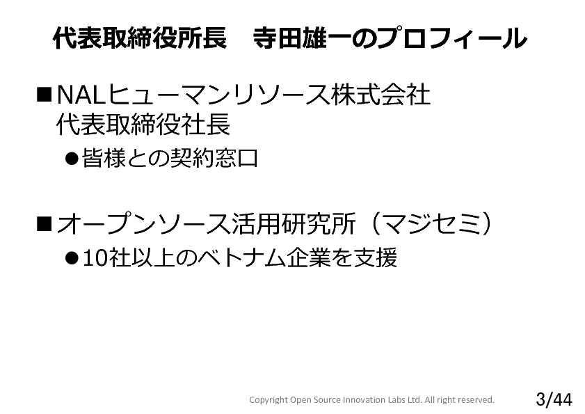 10社以上のベトナムオフショア開発企業と取引があり、30回以上のオフショア開発セミナーを企画・運営している、オープンソース活用研究所 所長の寺田が、このような疑問に全てお答えします。