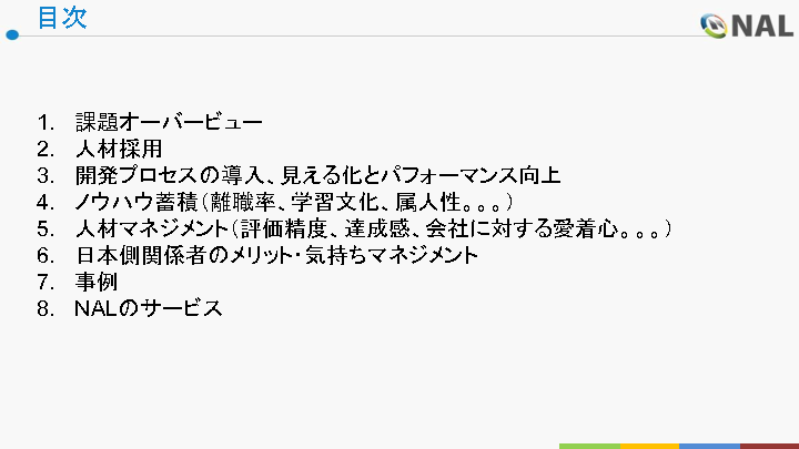 本セミナーでは、200名のベトナムIT企業「NAL」を率いる代表のニアが、ベトナムにけるエンジニア組織のマネージメントの課題の本質と、その解決方法、そしてハイパフォーマンスなチームを作るポイントについて解説します。