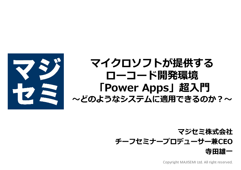 本セミナーでは、「Power Apps」の概要と、どのようなアプリが作成できるのか、解説します。