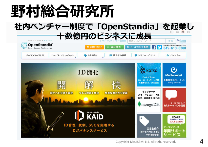 ※本コミュニティにご提示いただいた情報、及び、申込時にご記載頂いた内容、当日アンケートにご記入頂いた内容は、マジセミ株式会社にて収集し、マジセミ株式会社/オープンソース活用研究所、及び、主催・共催・協賛・協力・講演の各企業へ提供します。ご記入頂いた個人情報は、マジセミ株式会社/株式会社オープンソース活用研究所及び主催・共催・協賛・協力・講演企業にて厳重に管理し、各社のサービス、製品、セミナー、イベントなどのご案内に使用させて頂き、また各社のメルマガに登録させていただきます。ご記入頂いた個人情報は、法で定める場合を除きご本人の同意を得ることなく第三者へ提供いたしません。利用目的遂行のため個人情報の取扱いを外部に委託する場合は、委託した個人情報の安全管理が図られるように、委託をする各社が定めた基準を満たす委託先を選定し、委託先に対して必要かつ適切な監督を行います。 お客様の個人情報に関する開示等は、お申し出頂いた方がご本人(代理人)であることを確認した上で、各社において合理的な期間および範囲で対応いたします。開示等の手続き、個人情報の取扱いに関するお問い合わせは下記のお問い合わせ窓口へご連絡下さい。