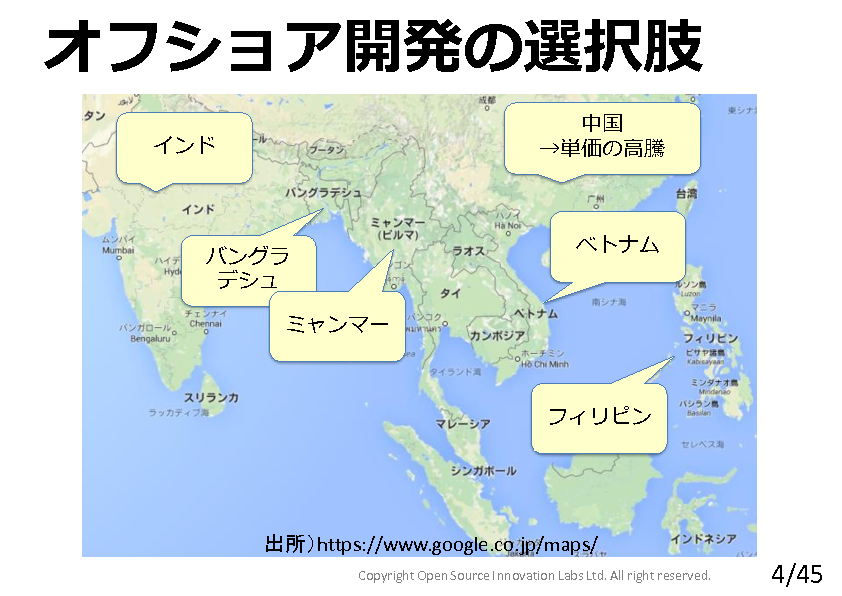 オフショア開発と言えば、中国が主流ですが、システムエンジニア人件費が急速に上昇しており、開発コストが増大しています。そこで、ベトナムへのオフショア開発が増えています。