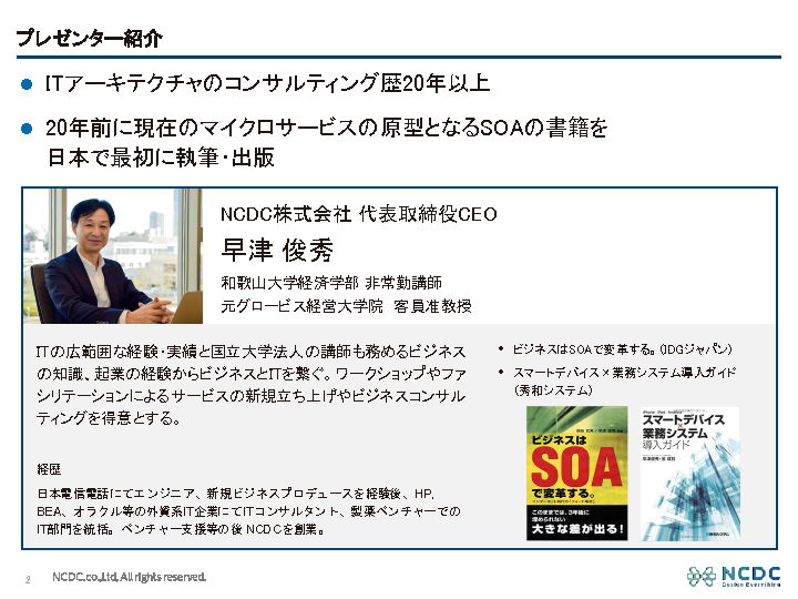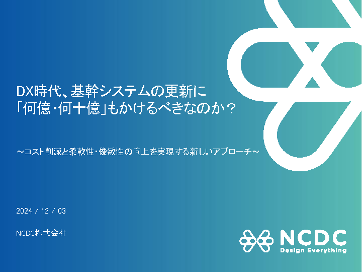 本セミナーでは、保守コストが圧倒的に低いSaaSの特性を活かしながらAPIによるデータ連携や、PaaSを活用した開発などを組みあせて柔軟性の高いシステムを実現する、NCDC独自のアプローチについて解説します。