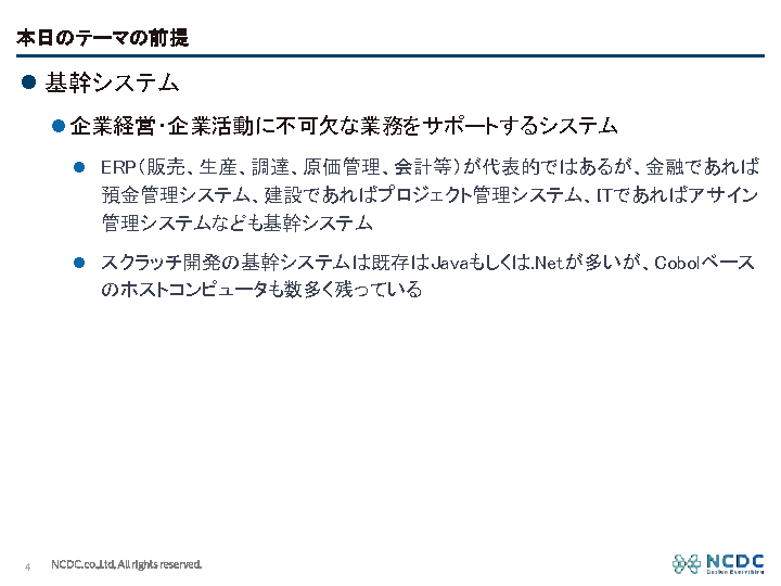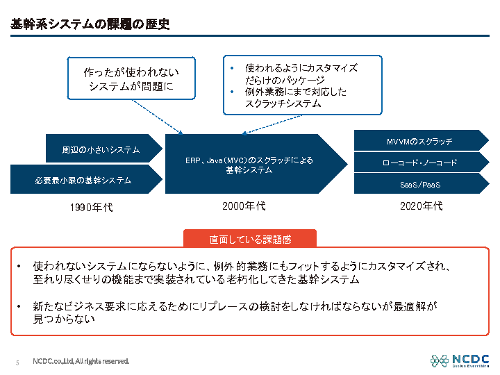 従来型の基幹システムは、保守・運用コストの増大、ベンダーロックインといった問題を抱えています。