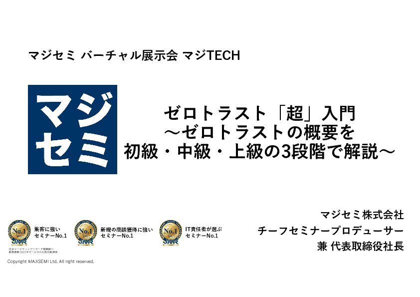 そこで本セミナーでは、ゼロトラストの概要を初心者向けに、「初級」「中級」「上級」の3段階に整理。