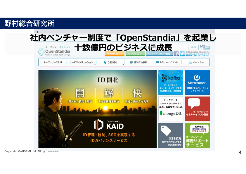 ※本コミュニティにてご提示いただいた情報、及び、申込時にご記載頂いた内容は、マジセミ株式会社にて収集し、マジセミ株式会社/オープンソース活用研究所、及び、主催・共催・協賛・協力・講演の各企業へ提供します。ご記入頂いた個人情報は、マジセミ株式会社/株式会社オープンソース活用研究所及び主催・共催・協賛・協力・講演企業にて各社のプライバシー・ポリシーに従って厳重に管理し、各社のサービス、製品、セミナー、イベントなどのご案内に使用させて頂き、また各社のメルマガに登録させていただきます。ご記入頂いた個人情報は、法で定める場合を除きご本人の同意を得ることなく第三者へ提供いたしません。利用目的遂行のため個人情報の取扱いを外部に委託する場合は、委託した個人情報の安全管理が図られるように、委託をする各社が定めた基準を満たす委託先を選定し、委託先に対して必要かつ適切な監督を行います。 お客様の個人情報に関する開示等は、お申し出頂いた方がご本人(代理人)であることを確認した上で、各社において合理的な期間および範囲で対応いたします。開示等の手続き、個人情報の取扱いに関するお問い合わせは下記のお問い合わせ窓口へご連絡下さい。