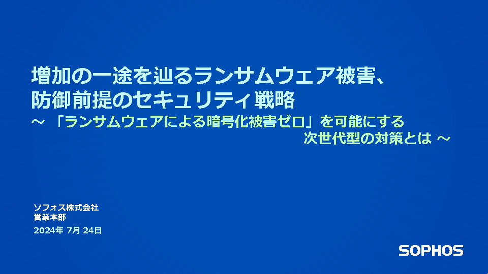 12:05~12:45 増加の一途を辿るランサムウェア被害、防御前提のセキュリティ戦略~ 「ランサムウェアによる暗号化被害ゼロ」を可能にする次世代型の対策とは ~
