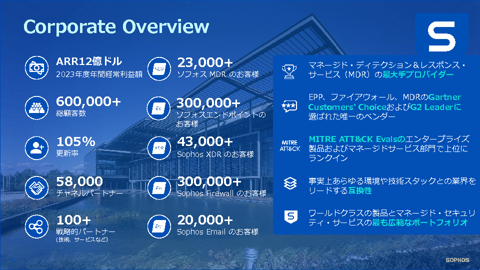 また、24時間365日の監視と専門家による対応を提供する「Sophos MDR」との組み合わせにより、ランサムウェア攻撃への対応力を飛躍的に高めることができます。セキュリティ人材が不足する中でも、経験豊富なアナリストが脅威の検知、分析、対処をサポートしてくれるのです。