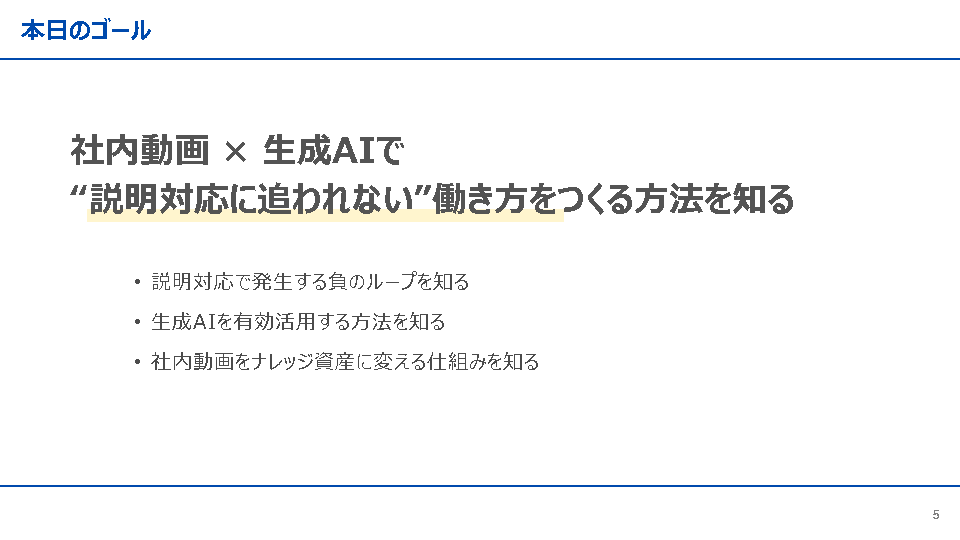 12:05~12:45 同じ説明・問い合わせ対応の負担を減らし、人的リソースを有効活用 〜「会議や説明会の録画」を生成AIでナレッジ資産化し、業務効率と成果をアップ 〜
