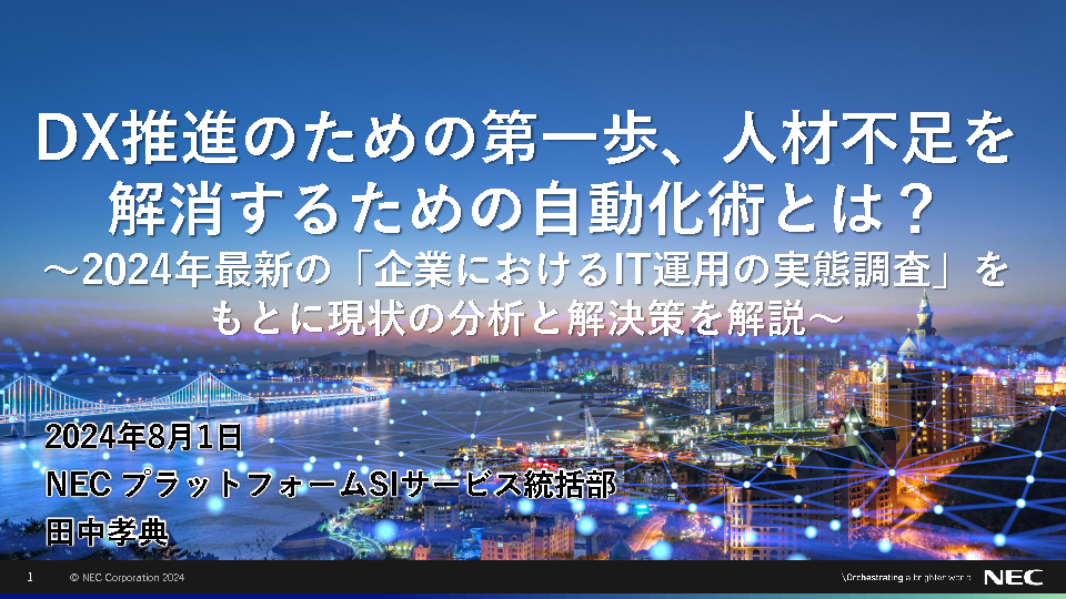 11:05~11:45 DX推進のための第一歩、人材不足を解消するための自動化術とは? ~2024年最新の「企業におけるIT運用の実態調査」をもとに現状の分析と解決策を解説~