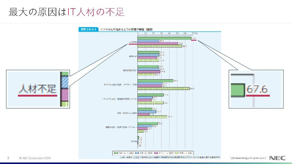 本来、企業成長につながるために注力すべき新規プロジェクトやITソリューションの導入が遅れてしまうと、競争力の低下を招くリスクがあり、運用の効率化及びリソースの確保は重要な課題です。