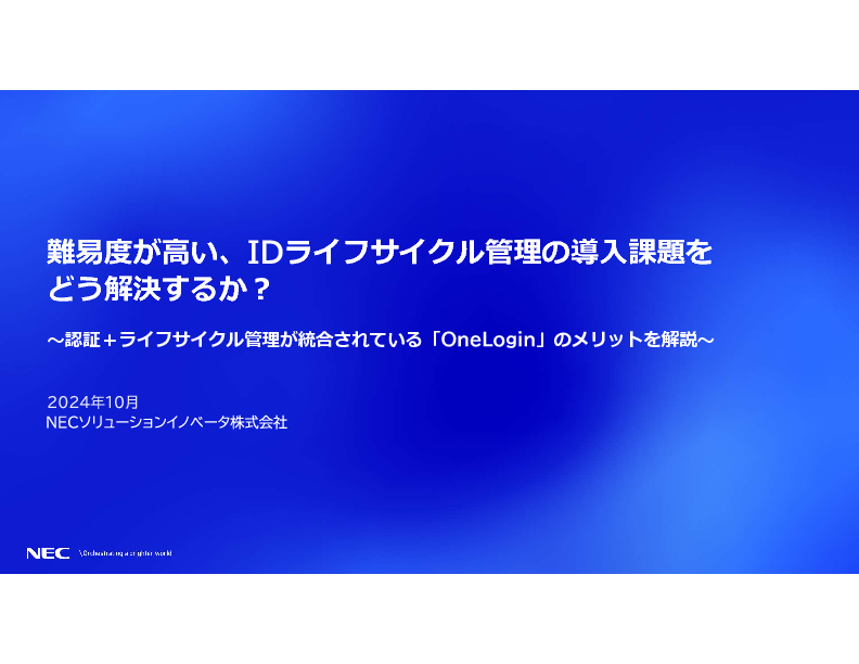 15:05~15:45 難易度が高い、IDライフサイクル管理の導入課題をどう解決するか? ~認証+ライフサイクル管理が統合されている「OneLogin」のメリットを解説~