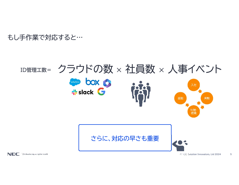 クラウドサービスが増えるに伴い、アカウント管理の業務負担は増大しています。